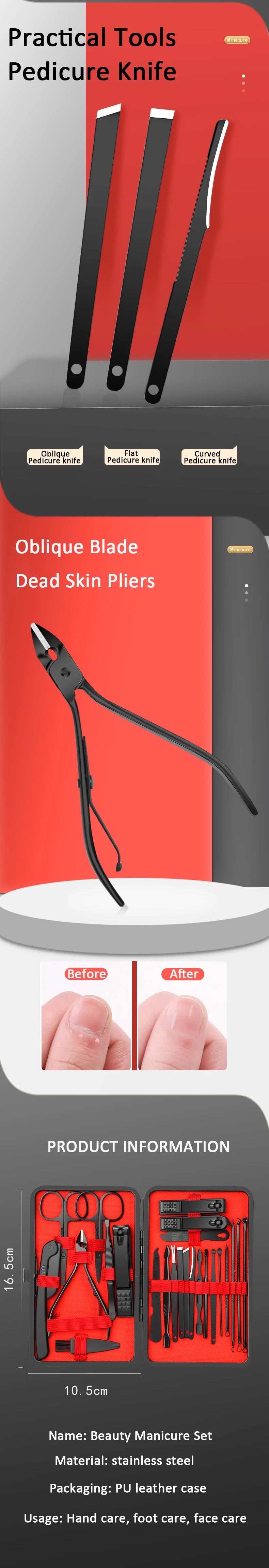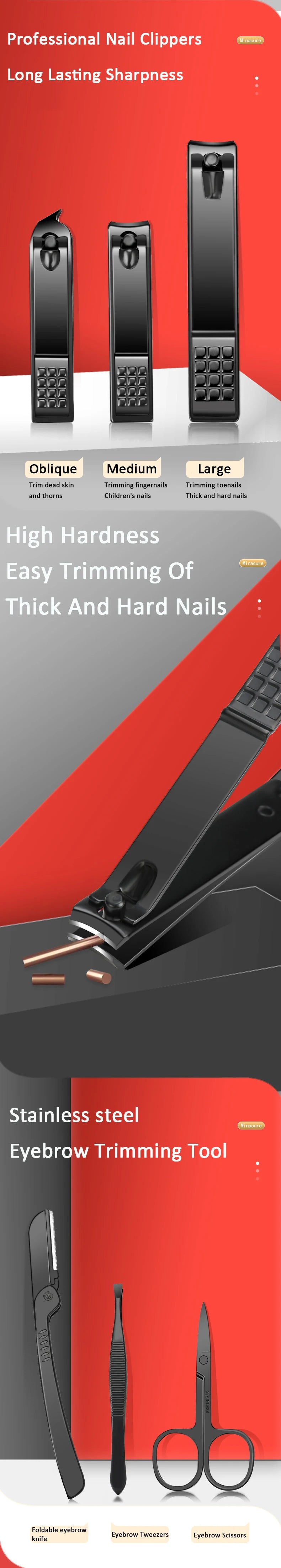 7/10/12/18/20/24PCS Set Professional Manicure Set Kits Stainless Steel Fingernail Toenail Clippers Set with Leather Portable